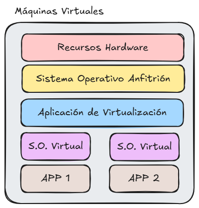 Las máquinas virtuales hasta ahora, requieren funcionar sobre un sistema de virtualización, como VirtualBox; y sobre esto instalar un sistema operativo nuevamente, conocido como Sistema Operativo Virtual, el cual podía ser el que deseásemos.
