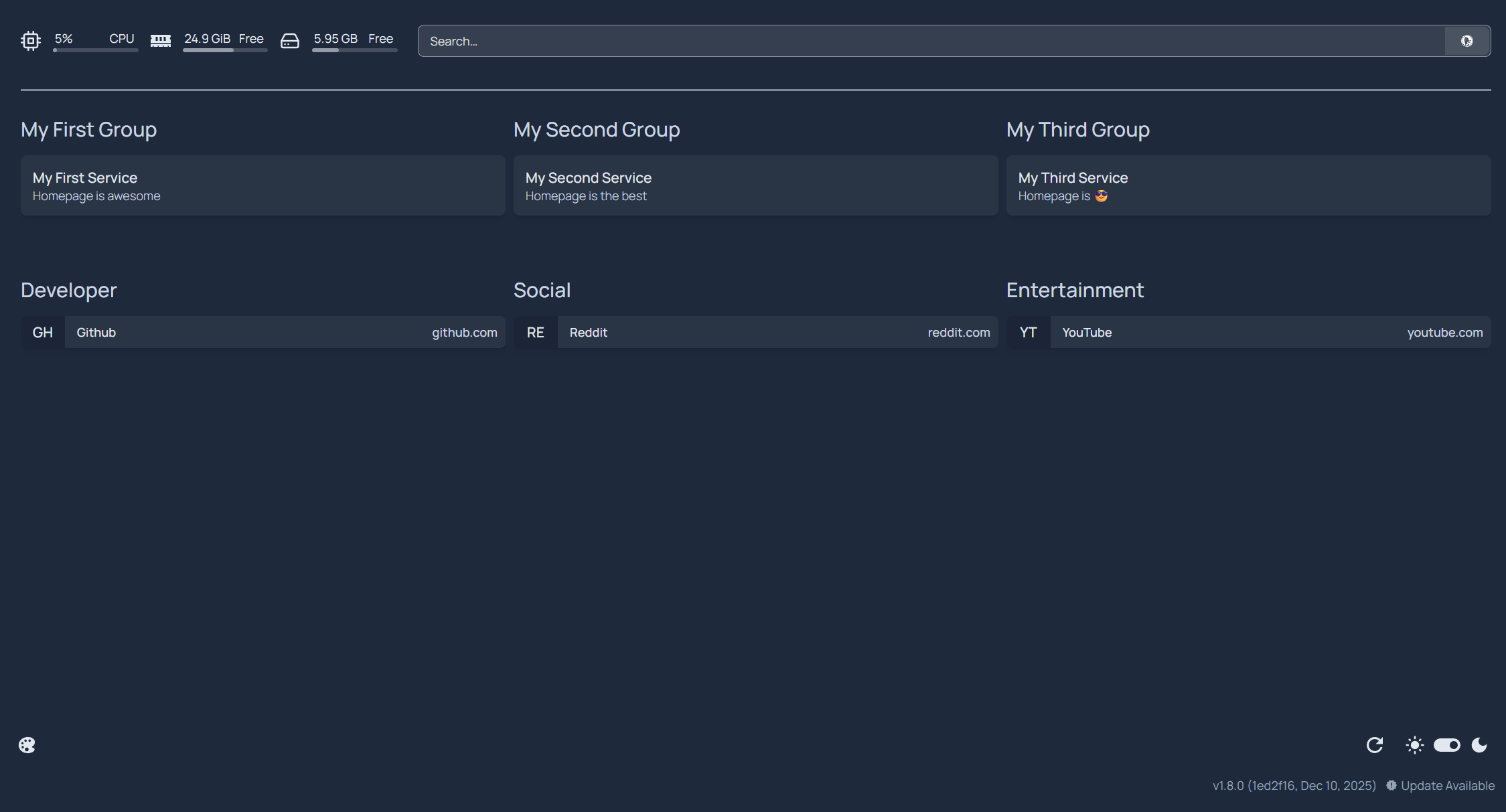 Ha llegado el momento de que configuremos un servicio que nos permita tener una interfaz en la que gestionar y agrupar todas nuestras aplicaciones, esto se conoce como Dashboard, y para este cometido vamos a usar Homepage.