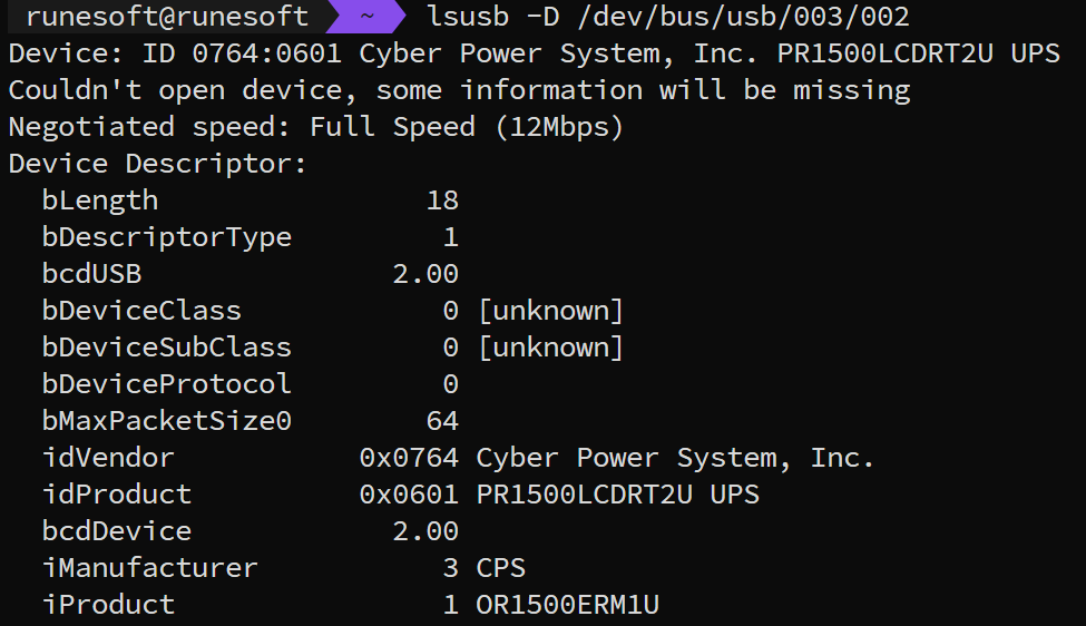 lsusb -D /dev/bus/usb/003/002