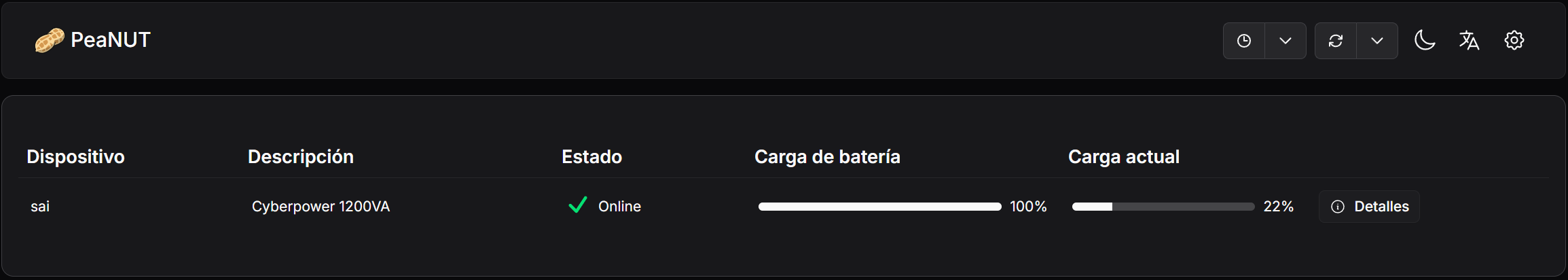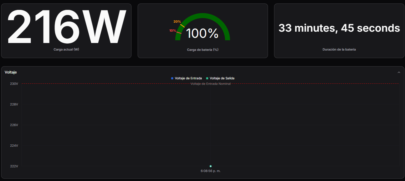 Y con esto tendríamos nuestro UPS bien monitorizado con PeaNUT.